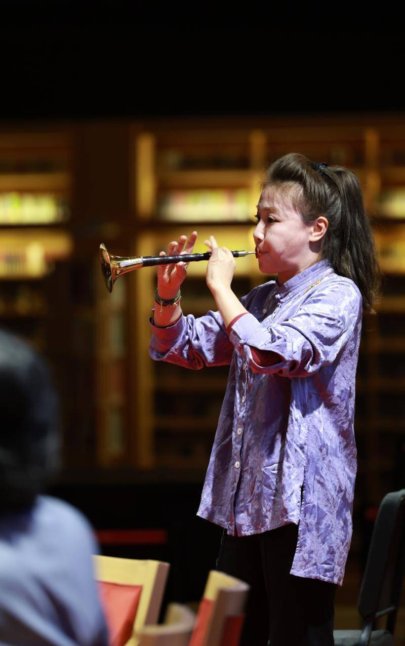 “秦文琛的创作向来寓精准不羁、寄深远于自由。”琵琶演奏家兰维薇表示,“为琵琶和西洋弦乐队而作的《行空》既不失乐队的群感与齐备的音区设置,又以其相对单纯统一的音色,强调了与独奏琵琶在性格上的对比。”担任大提琴协奏曲《黎明》独奏的莫漠现场演绎了作品精彩片段,在周海宏教授的指引下,观众感受微分音极细微的音符变化。担任唢呐协奏曲《唤凤》独奏的张倩渊则感慨表示,“我在2012年时第一次接触到这部作品,十多年的时间,这部作品伴随着我身份转化,也见证了我不断成长,让我深有感悟。我也一直谨记秦老师的指导,当技术达到娴熟自如时,应追求‘气象’的境界,这种气象是中国作品的精神‘外化’,是中国气象,是根植在中国艺术家与文化根脉的‘深度共鸣’。”担任笙协奏曲《云川》独奏的郑杨则直言:“这部作品对我的记忆力、体力、演奏技术都是巨大的考验,在练习时也需要跳脱以往笙乐的常规范式,即便经过多次沉淀,那些节奏与气息的细微处理中仍藏着未被发掘的表达可能,这正是作品最动人的价值。”